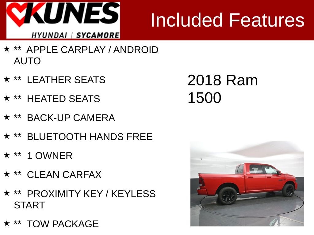1-Yr SiriusXM Guardian Trial, 115V Auxiliary Power Outlet, 20" x 9" Polished Aluminum Wheels, 3.21 Rear Axle Ratio, 4-Wheel Disc Brakes, 6 Speakers, 8.4" Touchscreen Display, ABS brakes, Active Grille Shutters, Adjustable pedals, Air Conditioning, Alloy wheels, AM/FM radio: SiriusXM, Apple CarPlay, Apple CarPlay/Android Auto, Audio Jack Input for Mobile Devices, Auto-dimming door mirrors, Auto-dimming Rear-View mirror, Automatic temperature control, Brake assist, Bucket Seats, Bumpers: body-color, Center Hub, Class IV Receiver Hitch, Cloth Bucket Seats, Compass, Delay-off headlights, Driver door bin, Driver vanity mirror, Dual front impact airbags, Dual front side impact airbags, Electronic Shift, Electronic Stability Control, Emergency communication system: SiriusXM Guardian, Folding Flat Load Floor Storage, Front anti-roll bar, Front Bucket Seats, Front Center Armrest w/Storage, Front dual zone A/C, Front fog lights, Front reading lights, Front wheel independent suspension, Full Length Upgraded Floor Console, Fully automatic headlights, Garage door transmitter, Google Android Auto, GPS Antenna Input, HD Radio, Heated door mirrors, Heated Front Seats, Heated front seats, Heated steering wheel, High Back Seats, Illuminated entry, Integrated Voice Command w/Bluetooth, Leather steering wheel, Low tire pressure warning, Media Hub (2 USB, AUX), Occupant sensing airbag, Outside temperature display, Overhead airbag, Overhead console, Panic alarm, ParkView Rear Back-Up Camera, Passenger door bin, Passenger vanity mirror, Power door mirrors, Power driver seat, Power Lumbar Adjust, Power steering, Power windows, Quick Order Package 26L Sport (DISC), Radio data system, Radio: Uconnect 4C w/8.4" Display, Rear 60/40 Split Folding Seat, Rear anti-roll bar, Rear seat center armrest, Rear step bumper, Remote keyless entry, Remote USB Port, SiriusXM Satellite Radio, Speed control, Split folding rear seat, Sport Performance Hood, Steering wheel mounted audio controls, Tachometer, Tilt steering wheel, Tip Start, Traction control, Tri-Fold Tonneau Cover, Trip computer, Turn signal indicator mirrors, USB Host Flip, Variably intermittent wipers, Voltmeter. CARFAX One-Owner. Clean CARFAX.